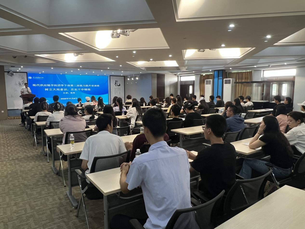 为深入学习贯彻党的二十届四中全会精神,切实加强团学组织建设,提升学生干部的履职能力和综合素养,近日,现代供应链学院(产业学院)成功举办了团学干部第二届综合能力提升专题模块培训。本次培训围绕四大核心模块系统展开,旨在全面提升学生干部过硬的思想政治素养、业务能力水平、组织领导能力及团队协作能力。